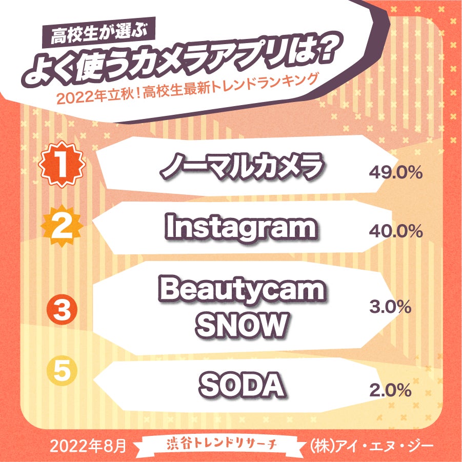 【渋谷トレンドリサーチ】高校生のカメラアプリ事情・よく使うカメラアプリはノーマルカメラが一強か!?今月のネクストトレンド「水光カラコン」とは…?高校生最新トレンド2022年立秋!渋谷トレンドリサーチ