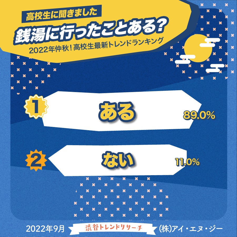 【渋谷トレンドリサーチ】10月10日は銭湯の日!イマドキ高校生の銭湯利用経験はなんと約9割!今月のネクストトレンド「10円パン」とは…?高校生最新トレンド2022年仲秋!渋谷トレンドリサーチ