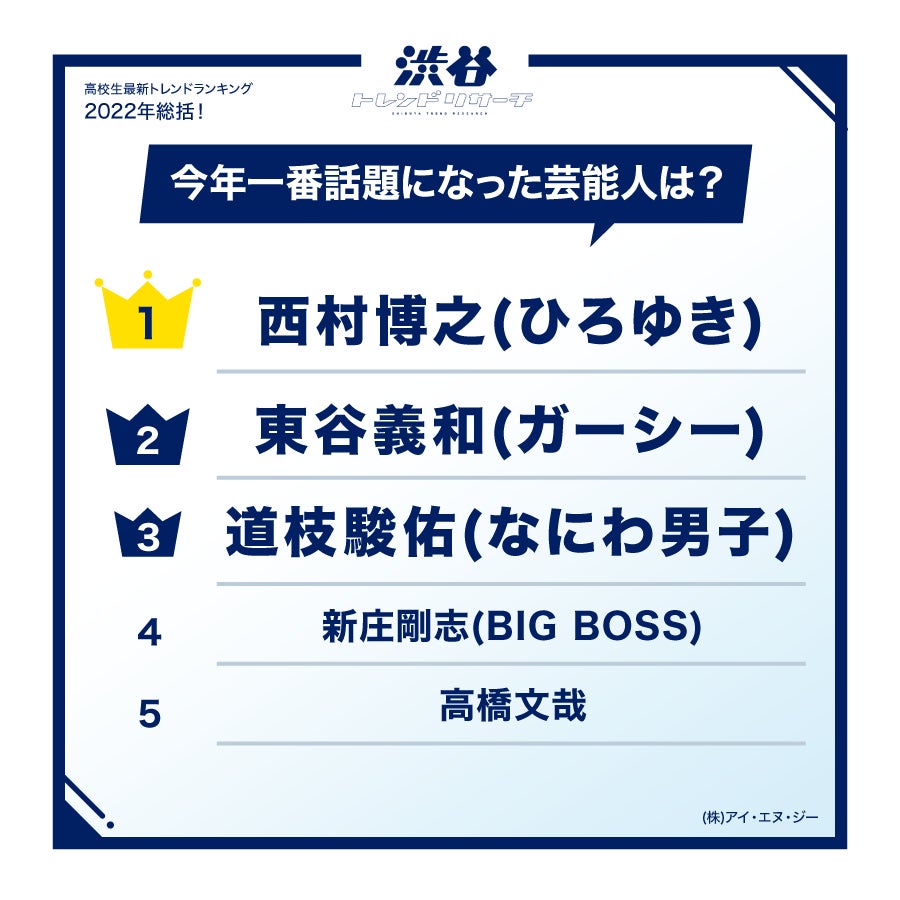 【2022年総括!高校生最新トレンドランキング】全8項目!高校生的流行語大賞やポーズなど発表!ネクストトレンドに入選した俳優やアイドル、漫画家からのコメントも! 渋谷トレンドリサーチ2022年冬の特大号