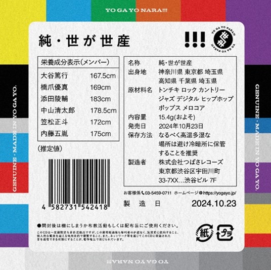【つばさレコーズ】世が世なら!!!の成分表がジャケットに!?様々な音楽ジャンルに挑戦した1 st EP「純・世が世産」の詳細公開!さらに収録曲「何卒!!!」の MV も同時公開